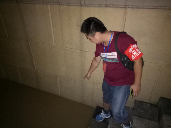圖為公司防汛隊(duì)員正在夜間巡查水位漲勢(shì)情況