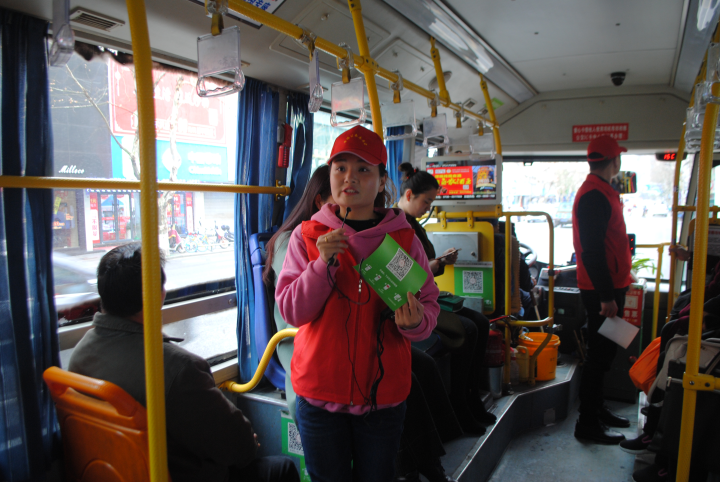 當(dāng)天上午8:30,公司志愿者們每兩人一組在4個客流集中的公交站點開展“文明乘車”勸導(dǎo)活動。活動現(xiàn)場,志愿者們認真指揮公交車輛進站???,耐心勸導(dǎo)乘客有序上下車,熱情攙扶行動不便的老人登車入座,積極向過往的廣大市民宣傳常德公交微信掃碼乘車相關(guān)優(yōu)惠活動,并熱心教導(dǎo)市民們?nèi)绾蜗螺d運用“坐公交”軟件,選擇更加方便、智能地出行方式。與此同時,志愿者們還走進車廂,積極倡導(dǎo)廣大乘客傳承雷鋒精神,主動為老弱病殘孕等弱勢群體讓座,營造文明車廂美好氛圍。車廂內(nèi),乘客們紛紛支持響應(yīng),并對公交志愿者們熱情周到的服務(wù)給予了高度贊譽。
