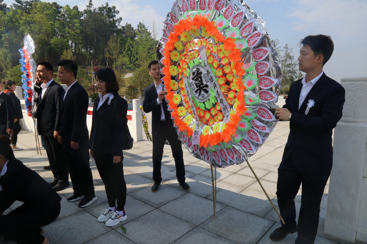 圖為公司青年團員向革命先烈敬獻花圈