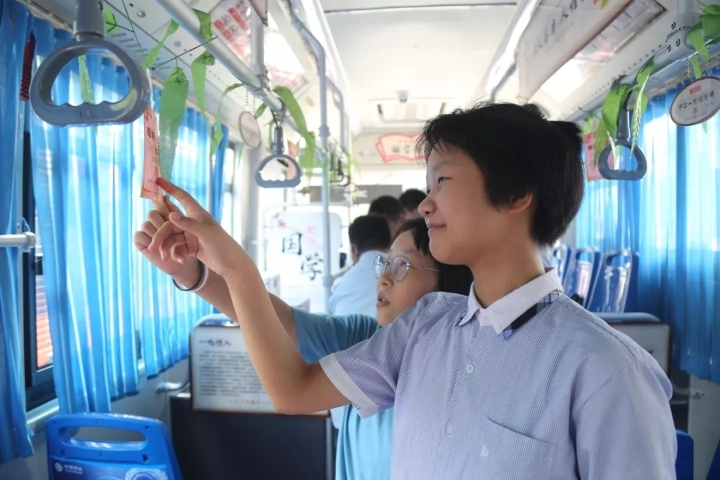 圖為47路國學(xué)車廂開展教師節(jié)活動(dòng)