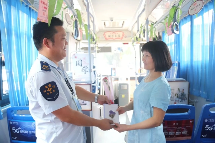 據(jù)47路駕駛員謝超介紹,47路線途經(jīng)市十一中,每天都有不少老師學(xué)生乘車出行。在教師節(jié)當(dāng)天,我們向老師們贈(zèng)送鮮花、卡片,同時(shí)在車廂內(nèi)開展生僻字有獎(jiǎng)問答活動(dòng),既為老師們送上了節(jié)日的祝福,又讓廣大乘客在參與活動(dòng)中加強(qiáng)了對(duì)傳統(tǒng)文化的了解,非常有意義。