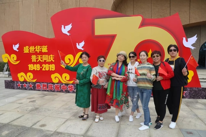 圖為返程大巴上老同志們歌唱《我和我的祖國(guó)》
