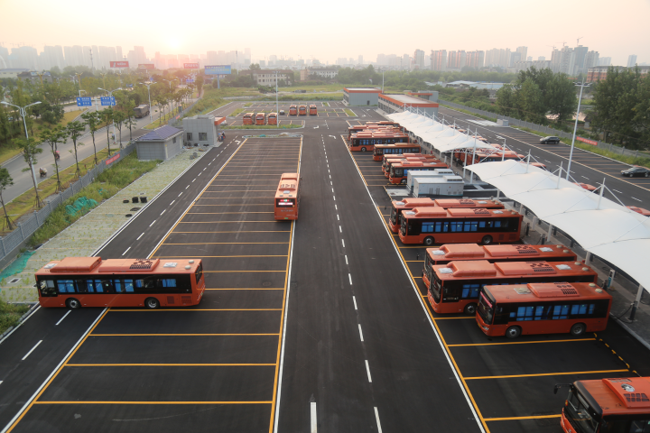 武陵公交站位于柳葉大道西延線以南,合興路以東,總占地45畝,建筑面積5342平方米,設(shè)置有綜合樓、維修車間、洗車間等功能性場(chǎng)所。站內(nèi)共建設(shè)252個(gè)停車位,配備充電樁位54個(gè),可一站式實(shí)現(xiàn)車輛停放、中轉(zhuǎn)、充電、維修保養(yǎng)及辦公調(diào)度等功能。