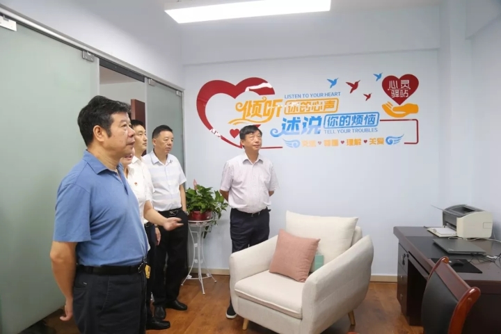 圖為領(lǐng)導(dǎo)一行觀摩常德公交“心靈驛站”