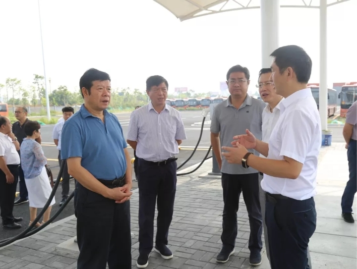 圖為公司董事長沈小平向領(lǐng)導(dǎo)一行匯報(bào)場(chǎng)站建設(shè)情況