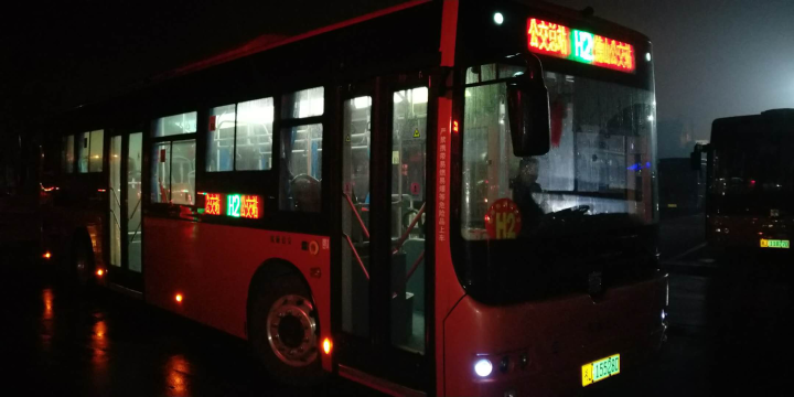 圖為凌晨6時,H2線新車準(zhǔn)點發(fā)班運營