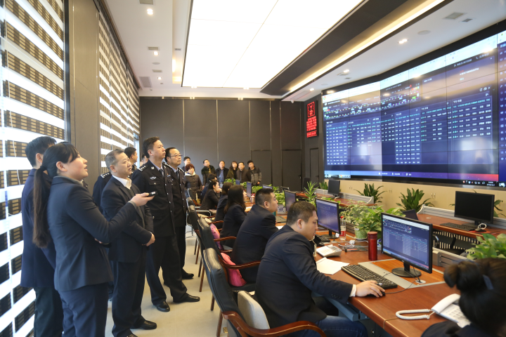 圖為副市長(zhǎng)李忠一行正在視察常德智慧公交指揮調(diào)度中心