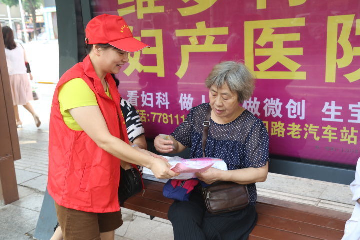 圖為公司黨員志愿者在站臺為老年乘客發(fā)放宣傳單