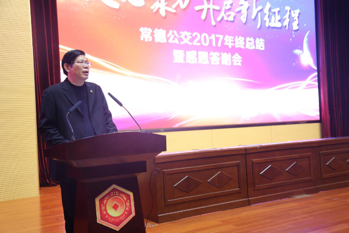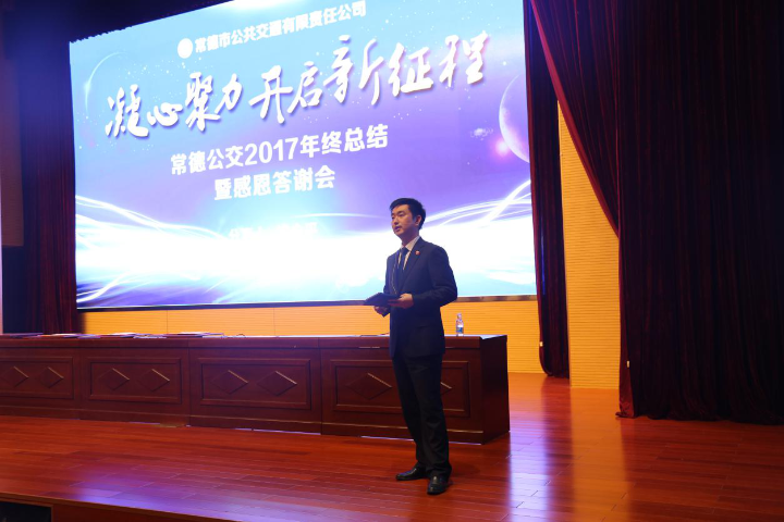 2月8日上午,市公交公司“2017年終總結(jié)暨感恩答謝會(huì)”在湘雅·常德醫(yī)院行政樓隆重舉行,公交班子成員、各部門干職員工及司乘人員代表共400余人參加大會(huì)。市經(jīng)投集團(tuán)副總經(jīng)理雷元才、市客運(yùn)管理處公交科科長(zhǎng)黃智華及公交退休職工代表、公交行風(fēng)監(jiān)督員代表應(yīng)邀出席會(huì)議。