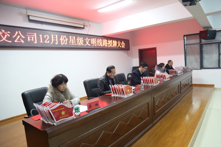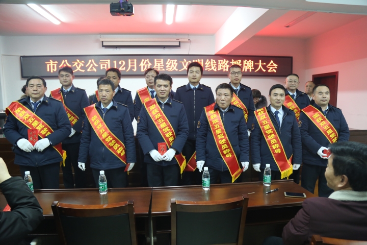 1月11日晚,市公交公司召開2017年12月份星級線路授牌大會,公司領導班子,各行管部室、分公司負責人,線路隊長及200余名駕駛員代表參加了本次大會。