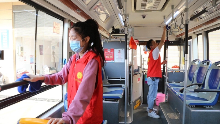 當(dāng)天上午,青年團(tuán)員志愿者們先后前往公交總站及市常德大道沿線各BRT站臺開展志愿服務(wù)活動。在公交總站,志愿者們自帶抹布、拖把等清潔工具,對100余輛公交車進(jìn)行了清潔打掃。在BRT站臺,志愿者們將站內(nèi)橫放亂停的共享單車恢復(fù)原位,碼放整齊。隨后又登入車廂,向乘客發(fā)放《動員廣大群眾積極參與愛國衛(wèi)生運(yùn)動的倡議書》,號召大家積極參與愛國衛(wèi)生運(yùn)動,共同鞏固疫情防控成果。