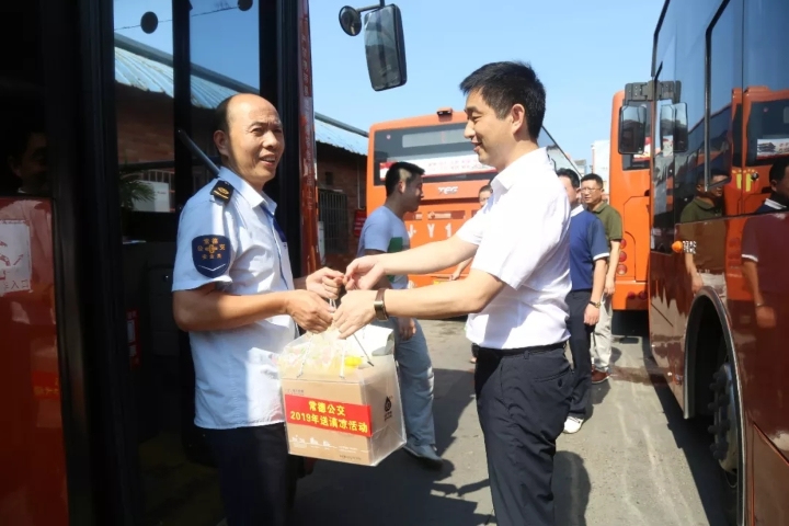 圖為公司領(lǐng)導(dǎo)為一線駕駛員送上防暑降溫物資